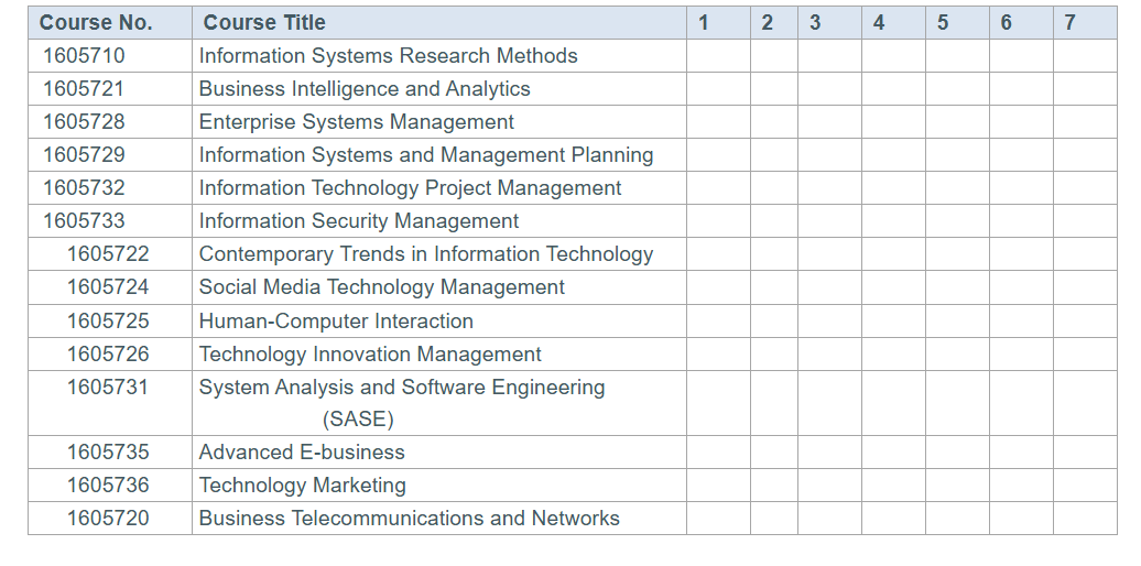 Master of Business Informatics / Program Learning Outcome Mapping Matrix